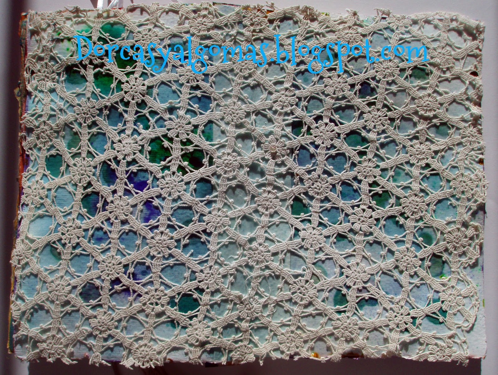 El siguiente material que he utilizado seguramente que os va a sorprender, pues se trata de un paño de ganchillo que hizo mi madre hace mucho tiempo; pero no os asustéis está muy roto, he intentado arreglarlo pero cada vez que metía la aguja para repararlo se rompía más, y como me daba pena tirarlo a la basura, lo he empleado para la siguiente capa de la página.
